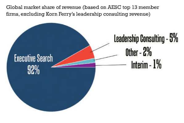 In 2010 we acknowledged leadership consulting as an opportunity for executive search firms, with 69% of respondents saying that their clients were asking for services beyond executive search. That demand has begun to come to fruition in the last five years. Leadership consulting now contributes 5% of total global revenue for the profession, excluding revenue from Korn Ferry.  Deals like Korn Ferry’s for Hay Group, PDI Ninth House and Global Novations; and Heidrick & Struggles’ for Senn Delaney and Co Company are game changers.  By acquiring established consulting firms, our profession is demonstrating its commitment to more rapid growth into a broader range of leadership advisory services.  Many firms around the world are adding new talent, tools and methodologies to build leadership advisory capability to respond to increasing client need.  And there are firms, large and small, that have had leadership advisory services as a core part of their service offering for many years.
