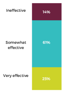 We asked respondents to rate how effective they felt their leaders were. Just 25% rated their leaders as “very effective”, while the majority (61%) felt they were only “somewhat effective” and 14% felt their leaders were ineffective.