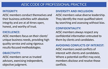 “The obvious correlation between what I do and the AESC Code of Professional Practice is around confidentiality,” Iatonna explains. “In more than a lot of industries, there is a very high expectation of trust from both the companies as well as the candidates who we work with day to day. If I were to consider the other aspects of our code of conduct, I would tell you that we strive for excellence and being great at what we do, to make sure that we’re supporting the business.”