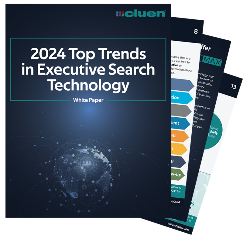 In their whitepaper, AESC partner Cluen reveals the latest AI innovations and cutting-edge technology trends in the executive search spaced based on 2024 industry surveys. Cluen's Encore Max system leverages the latest AI technology to save time and win new business. Its research brings a deep understanding of the latest tools and strategies that enable you to better innovate for the future.