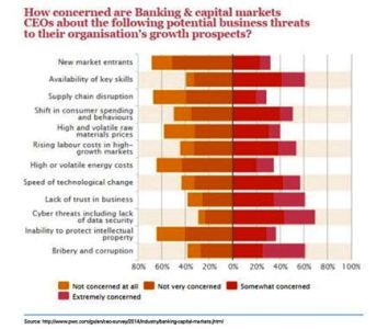 Nearly half of CEOs surveyed said the challenge to find talent is hindering their growth. Firms will therefore have to offer more incentives to draw executives in, especially with competition from other industries, particularly technology.  A significant amount of talent that was once drawn to the financial services industry is now flocking to technology, which has less stringent regulation and diverse working arrangements, such as more personal time and the opportunity to work remotely.