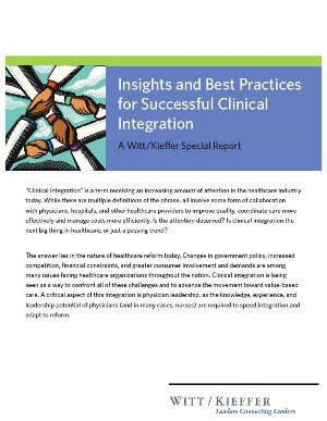 In a special report by Witt/Kieffer, the firm held a panel with three industry experts to explore important issues surrounding clinical integration. The panel was titled “It’s About Great Physician Leadership: Insights and Best Practices for Successful Clinical Integration.” Panelists discussed the skills and temperament needed for a physician to transition into an effective leader of a hospital or health system.